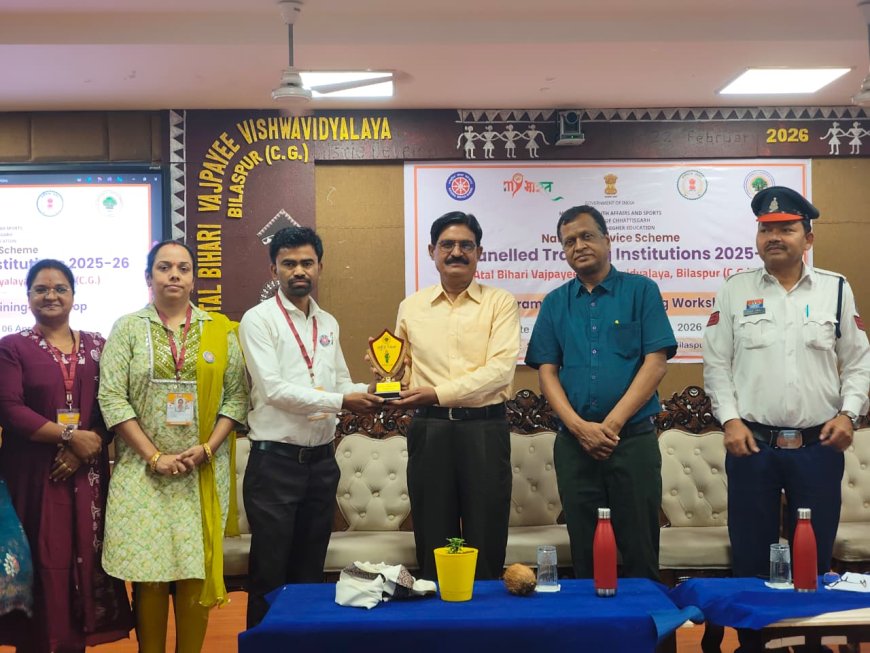 बिलासपुर - अटल बिहारी वाजपेई विश्वविद्यालय बिलासपुर में जिले के सभी विद्यालय एवं महाविद्यालय के राष्ट्रीय सेवा योजना इकाई के प्रभारियों के एक सप्ताह के प्रशिक्षण कार्यक्रम अंतर्गत आज पुलिस उप महानिरीक्षक एवं वरिष्ठ पुलिस अधीक्षक राजनेश सिंह के दिशा निर्देश एवं यातायात बिलासपुर के अतिरिक्त पुलिस अधीक्षक यातायात रामगोपाल करियारे के पर्यवेक्षण में यातायात की पाठशाला का आयोजन किया गया। जिसमें उपस्थित विश्वविद्यालय एवं महाविद्यालय के सभी अध्यापकों को सड़क सुरक्षा के नियम, सड़क दुर्घटना के कारण ,निवारण, तथा राहगीर योजना के साथ-साथ ITMS की सविस्तार जानकारी दी गई । कार्यक्रम में विश्व विद्यालय के NSS के कार्यक्रम समन्वयक मनोज सिन्हा सहित लगभग 100 लोगों उपस्थित हुए यातायात की ओर से मास्टर ट्रेनर उमाशंकर पांडे एवं यातायात के अधिकारियों एवं कर्मचारियों के द्वारा उपस्थित प्रशिक्षार्थियों को उक्तानुसार प्रशिक्षण दिया गया l विदित हो कि वर्तमान में यातायात नियमों के उल्लंघन के मामले में युवा वर्ग सर्वाधिक उच्श्रृंखल देखे गए हैं अतः उक्त युवाओं को राष्ट्रीय भावनाओं के प्रति ओतप्रोत करने तथा सड़क सुरक्षा के प्रति संवेदनशील एवं जागरूक होकर जिम्मेदार नागरिक बनने की दिशा में उपस्थित प्रशिक्षणार्थियों एवं अध्यापकों को महत्वपूर्ण भूमिका निभाने हेतु संदेश संवाहक के रूप में दायित्व दिए गए। महाविद्यालय में न सिर्फ विषयांकित विषयों पर छात्र-छात्राओं को शिक्षित करने की आवश्यकता है अपितु कुछ महत्वपूर्ण सामाजिक जिम्मेदारियों का भी निर्वहन कर सामाजिक सरोकार की भूमिका को बहुत ही गंभीरतापूर्ण समझने एवं उसका परिपालन करने की नैतिक दायित्व स्वमेव लेने के लिए अध्यापकों को प्रेरित करने की जिम्मेदारियां प्रदान की गई। युवाओं में तेजी एवं लापरवाही पूर्वक वाहन चालन, स्टंटिंग, खतरनाक तरीके से वाहन चालान, मोडिफाइड साइलेंसर, हूटर, प्रेशर हॉर्न आदि के माध्यम से शोर गुल करने वाले प्रणाली लगाकर वाहनों में चलाने की आदत, साथ ही न सिर्फ स्वयं यातायात नियमों का उल्लंघन करते हैं अपितु अपने सहयोगी अन्य साथियों को भी उच्छृंखलता एवं यातायात नियमों के प्रति अहेलनापूर्ण आचरण हेतु प्रेरित करते है अतः महाविद्यालय ऐसे युवाओं के प्रति सजग होकर उन्हें राष्ट्र के नैतिक दायित्वों के प्रति जिम्मेदार बने हेतु प्रेरित करने का महत्वपूर्ण स्थल के रूप में विश्वविद्यालय परिसर को रेखांकित करते हुए सदैव यातायात नियमों के पालन के लिए प्रेरित किया गया। इस विशेष कार्यशाला के माध्यम से जिले के सभी युवाओं एवं नागरिकों से यातायात पुलिस के द्वारा अपील किया गया है कि सड़कों पर चलते हुए सदैव यातायात सुरक्षा म