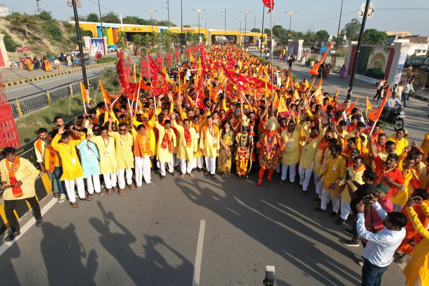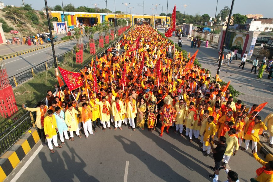 अयोध्या/बिलासपुर। चैत्र नवरात्र और रामनवमी के पावन अवसर पर बिलासपुर से निकले 1008 श्रद्धालुओं का जत्था अयोध्या पहुंचा, जहां श्रीराम जन्मभूमि मंदिर में रामलला के दर्शन कर भक्त भाव-विभोर हो उठे। 25 मार्च को पुलिस ग्राउंड से रवाना हुआ यह जत्था भजन-कीर्तन और जयघोष के बीच 26 मार्च को अयोध्या पहुंचा। यहां स्थानीय लोगों ने पुष्पवर्षा कर स्वागत किया। विश्राम के बाद श्रद्धालु पदयात्रा करते हुए मंदिर पहुंचे, जहां दर्शन के दौरान कई भक्तों की आंखें नम हो गईं। श्रद्धालुओं ने इसे जीवन का सबसे पावन क्षण बताया। यात्रा के दौरान त्रिवेणी संगम में स्नान भी किया गया, जिसे भक्तों ने आत्मिक शुद्धि का अनुभव बताया। कई युवाओं ने इस यात्रा के बाद नशामुक्त और अनुशासित जीवन जीने का संकल्प लिया। यात्रा संयोजक प्रवीण झा के नेतृत्व में भोजन, आवास, सुरक्षा और चिकित्सा की बेहतर व्यवस्था रही। स्वयंसेवकों की सक्रिय भूमिका से यात्रा सुव्यवस्थित और सफल रही। श्रद्धालुओं ने कहा कि यह यात्रा केवल दर्शन नहीं, बल्कि जीवन को नई दिशा देने वाला आध्यात्मिक अनुभव साबित हुई