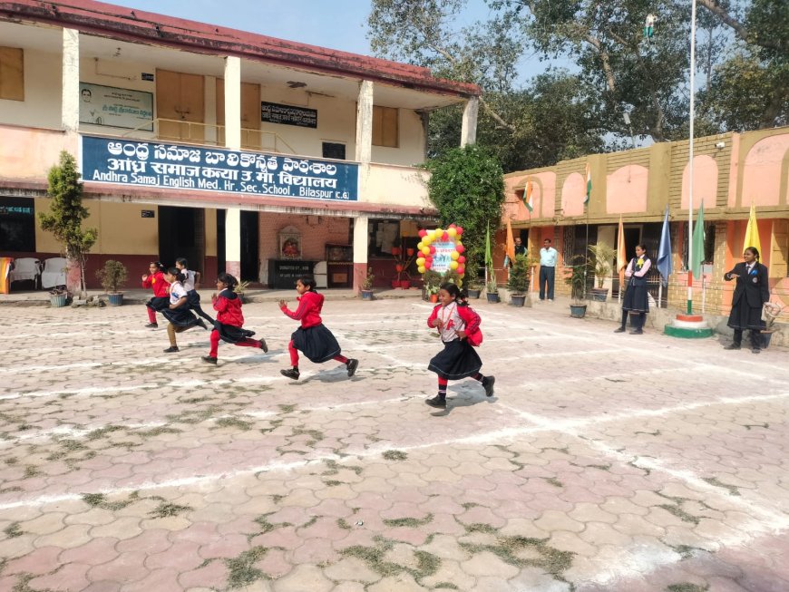 बिलासपुर - आंध्र समाज द्वार संचालित आंध्रा समाज कन्या ऊ मां विद्यालय, हिंदी, इंग्लिश मीडियम स्कूल बुधवारी बाजार रेलवे परिक्षेत्र बिलासपुर छत्तीसगढ़ तीन दिवसीय खेल खुद प्रतियोगिता का आयोजन दिनांक 1 दिसंबर से 3 दिसंबर 2025 तक आयोजित था। जिसमे कबड्डी, शॉर्ट फुट, खोखो, रिले रेस,50 मीटर दौड़ आदि विभिन्न खेलो का आयोजन हर वर्ष की तरह इस वर्ष भी पढ़ाई के साथ साथ शारीरिक व्यायाम, खेल मनोरंजन आयोजित किया जाता है। कबड्डी खेल में प्रथम बालक आयुष समुद्रे, देवराज समूद्रे, सक्षम रामटेके, युवराज यादव, रणवीर वर्मा, मयंक पाल, भूपेंद्र यादव, मेहुल खापर्डे, मोहम्मद अयान प्रथम रहे, उसीप्रकार शॉर्ट फुट में प्रथम कु तानिया, द्वितीय कु रिया बर्मन, तृतीय कू तानिया पठान, शॉर्ट फुट बालक प्रथम आयुष समुद्रे द्वितीय रणवीर कुमार वर्मा, तृतीय आयुष हातगेन, खो खो में प्रथम बालिका वर्ग में प्रथम कु अंकिता मिश्रा, कु अक्षरा मिश्रा, कु नव्या हजारिया, कु मलिष्का, कु सुंदरी सौम्य, कु दिव्य चौहान, कु मीनाक्षी मोगरे, कु खुशी , खो खो में प्रथम बालक वर्ग में प्रिंस बक्सेल, लक्की काटिकी, विष्णुदास मानिकपुरी, आयुष हातगेन, अंकित बकसेल रहे। शाला खेल प्रतियोगिता में मुख्य अतिथि के रूप में समाज के उपाध्यक्ष डी एन प्रसाद, वरिष्ठ सदस्य एस वी रमना, के अप्पा राव, प्रिंसिपल डी रामाम (हिंदी मीडियम) श्रीमती दयामनी, प्रिंसिपल (अंग्रेजी माध्यम) आर वरलक्ष्मी (प्रधान पाठिका), बी यू बी रेड्डी (प्रधान पाठक) एम श्रीनिवास राव (प्रधान पाठक अंग्रेजी माध्यम) आदि उपस्थित थे।