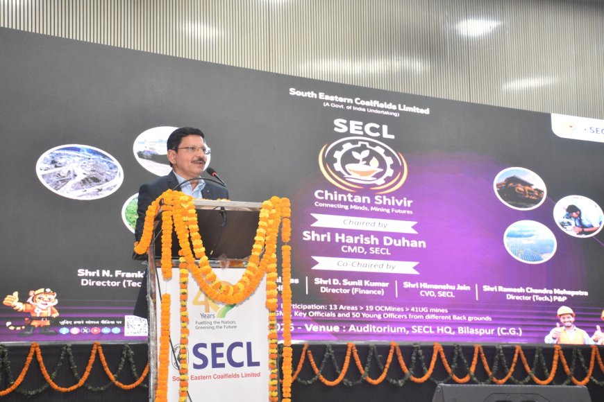 बिलासपुर - ऊर्जा के क्षेत्र में आत्मनिर्भर भारत के लक्ष्य के दृषिगत एसईसीएल में दिनांक 16 जनवरी 2026 को पहले चिंतन शिविर का आयोजन किया गया। कार्यक्रम एसईसीएल मुख्यालय, बिलासपुर के ऑडिटोरियम में संपन्न हुआ। इस चिंतन शिविर का उद्देश्य कंपनी की उपलब्धियों की समीक्षा करना, कमियों की पहचान करना तथा उत्पादन, डिस्पैच, सेफ्टी, कॉस्ट एफिशिएंसी, सस्टेनेबिलिटी और डिजिटाइजेशन को सुदृढ़ करने के लिए स्पष्ट एवं समयबद्ध एक्शन प्लान पर मंथन करना था। इस अनूठी और दूरदर्शी पहल का नेतृत्व एसईसीएल सीएमडी हरीश दुहन ने किया। उनके साथ निदेशक (तकनीकी–संचालन) एन फ्रैंकलिन जयकुमार, निदेशक (मानव संसाधन) बिरंची दास, निदेशक (वित्त) डी सुनील कुमार, मुख्य सतर्कता अधिकारी हिमांशु जैन, निदेशक (तकनीकी) यो./परि. रमेश चन्द्र महापात्र की भी उपस्थिति रही। शिविर में मुख्यालय एवं सभी संचालन क्षेत्रों से लगभग 200 अधिकारियों ने भाग लिया, जिनमें क्षेत्रीय महाप्रबंधक, विभागाध्यक्ष एवं ई-5 स्तर तक के युवा अधिकारी बड़ी संख्या में शामिल रहे। इस अवसर पर सीएमडी श्री हरीश दुहन ने कहा कि एसईसीएल को हमें एक बार फिर देश की नंबर 1 कंपनी बनाना है और इसके लिए रिफॉर्म को एक नारे तक सीमित ना रखते हुए हमें इसे अपनी कार्य-संस्कृति का हिस्सा बनाना होगा। हमें स्पीड, टेक्नोलॉजी और डिजिटल इंटरवेंशन के माध्यम से तेज़ निष्पादन और स्पष्ट एवं पारदर्शी निर्णय-प्रक्रिया पर फोकस करना होगा। उत्पादन की साथ-साथ हमें गुणवत्ता पर भी पूरा ध्यान देना होगा ताकि हम एक बेहतर कस्टमर-एक्सपिरियन्स दे सकें। कॉस्ट एफिशिएंसी के साथ रेवेन्यू जनरेशन पर लगातार काम करना भी आज की आवश्यकता है। विज़न 2030 और विज़न 2047 को ध्यान में रखते हुए डायवर्सिफिकेशन, नेट-ज़ीरो रोडमैप और इंडस्ट्री लिंकेज में हमें हमेशा एक कदम आगे रहना होगा। कंपनी के युवा अधिकारी कंपनी का भविष्य हैं और आप सभी को कंपनी के विज़न को साकार करने में तथा एसईसीएल को फ्यूचर-रेडी संस्था बनाने में अग्रणी भूमिका निभानी है। 15 प्रस्तुतियाँ, खुला संवाद और सहभागी मंथन चिंतन शिविर के दौरान विभिन्न विभागाध्यक्षों द्वारा कुल 15 पीपीटी प्रस्तुतियाँ दी गईं जिसमें वर्ष 2047 के लिए कंपनी की योजना, अंडरग्राउंड प्रोडक्शन प्लान, क्वालिटी कंट्रोल, डिस्पैच, एफ़एमसी, सेफ़्टी, भू-अधिग्रहण एवं पुनर्स्थापन, पर्यावरण एवं वन स्वीकृति, डिजिटाइजेशन/एआई का प्रयोग, मानव संसाधन, फाइनेंस, कांट्रैक्ट मैनेजमेंट जैसे विषय शामिल रहे। प्रत्येक सत्र के पश्चात प्रश्नोत्तर सत्र आयोजित किया गया, जिसमें सीएमडी, सभी निदेशक एवं मुख्य सतर्कता अधिकारी ने सक्रिय रूप से भाग लिया। खुले मंच पर विचार, सुझाव एवं नवाचारात्मक आइडियाज़ पर विस्तार से चर