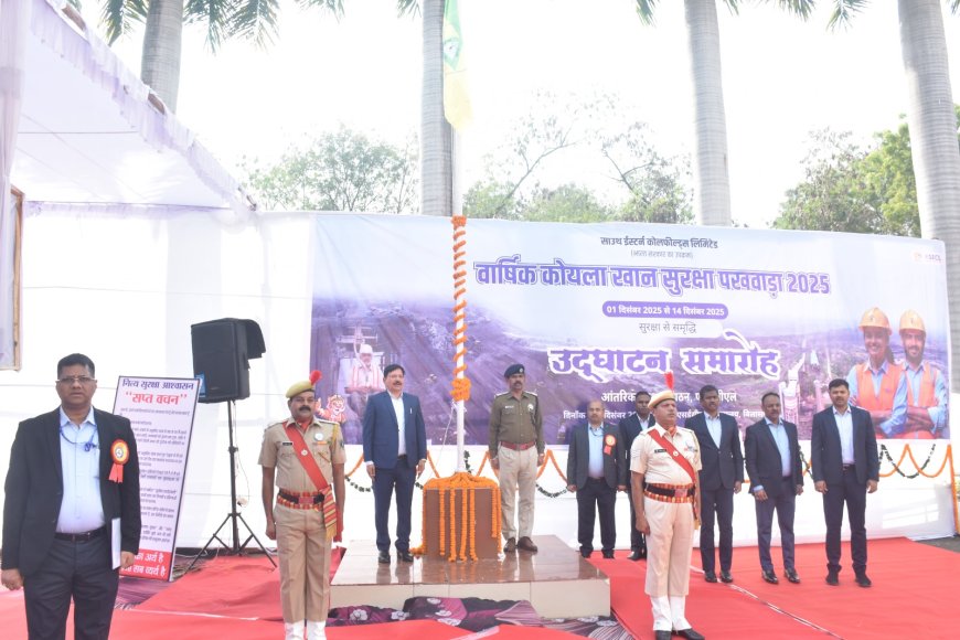 बिलासपुर - दिनांक 01 दिसंबर से 14 दिसंबर 2025 तक आयोजित वार्षिक कोयला खान सुरक्षा पखवाड़ा 2025 का उद्घाटन दिनांक 01.12.2025 को एसईसीएल मुख्यालय प्रांगण में अध्यक्ष सह प्रबंध निदेशक हरीश दुहन ने निदेशक तकनीकी (संचालन) एन. फ्रैंकलिन जयकुमार, निदेशक (कार्मिक) बिरंची दास, मुख्य सतर्कता अधिकारी हिमांशु जैन, विभिन्न विभागाध्यक्षों, अधिकारियों-कर्मचारियों, विभिन्न श्रमसंघ प्रतिनिधियों की उपस्थिति में सुरक्षा ध्वज फहराकर किया गया। मुख्य अतिथि अध्यक्ष सह प्रबंध निदेशक श्री हरीश दुहन ने अपने उद्बोधन में कहा कि हम सभी को मिलकर शून्य दुर्घटना लक्ष्य की प्राप्ति के लिए लगातार प्रयास करते रहने होगा। हम सभी को जाने-अनजाने कोई भी ऐसा काम नहीं करना है जिससे हमारी या हमारे साथियों की जान जोखिम में पड़ जाए और सुरक्षा हम सभी की ज़िम्मेदारी इस विचारधारा के साथ हमें कार्यनिष्पादन करना होगा। खदान में शून्य दुर्घटना लक्ष्य की प्राप्ति के लिए हमें हरसंभव प्रयास करना होगा और खदानों में कर्मियों में सुरक्षा के प्रति जागरूकता को बढ़ावा देने के लिए निरंतर प्रयास करते रहना होगा। निदेशक तकनीकी (संचालन) एन. फ्रैंकलिन जयकुमार ने कहा कि सुरक्षा हमारी पहली प्राथमिकता है। उन्होने सुरक्षा लक्ष्य के प्राप्ति के लिए कार्यसंस्कृति में अनुशासन और अभिवृत्ति (Attitude) पर ज़ोर दिया। सुरक्षा पखवाड़ा सुरक्षा के प्रति हमारी सामूहिक प्रतिबद्धता को दोहराने, हमारे कर्मियों के प्रयासों को सम्मान देने एवं सुरक्षा को लेकर नए मापदंड स्थापित करने का एक अनूठा अवसर प्रदान करता है।इस अवसर पर प्रारंभ में अतिथियों द्वारा शहीद स्मारक व खनिक प्रतिमा पर माल्यार्पण किया गया। इस अवसर पर सुरक्षा शपथ का पठन मुख्य अतिथि द्वारा किया गया जिसे समस्त उपस्थितों ने दोहराया। कार्यक्रम में शहीद श्रमवीरों के सम्मान में एक मिनट का मौन रखकर श्रद्धांजलि अर्पित की गयी। मंचस्थ अतिथियों द्वारा "सुरक्षा से समृद्धि बुकलेट" जिसमें सुरक्षा मानकों का उल्लेख है का विमोचन किया गया। कार्यक्रम में स्वागत उद्बोधन श्री मनोज कुमार, महाप्रबंधक (सुरक्षा एवं बचाव) द्वारा प्रस्तुत किया गया। इस अवसर पर कुसमुंडा क्षेत्र टीम द्वारा ’’सुरक्षा’’ विषय पर नाटक का मंचन किया गया जिसमें खदान में कार्य दौरान सुरक्षा के सभी मानकों का पालन करने का संदेश दिया गया। कार्यक्रम के अंत में अध्यक्ष सह प्रबंध निदेशक श्री हरीश दुहन ने निदेशक तकनीकी (संचालन) एन. फ्रैंकलिन जयकुमार,निदेशक (कार्मिक) बिरंची दास, मुख्य सतर्कता अधिकारी हिमांशु जैन ने एसईसीएल के सभी कोयला क्षेत्रों में सुरक्षा सन्देश के प्रसार-प्रचार के लिए सुरक्षा रथ को फ्लेग आफ कर रवाना किया।कार्यक्रम में उद्घोषण