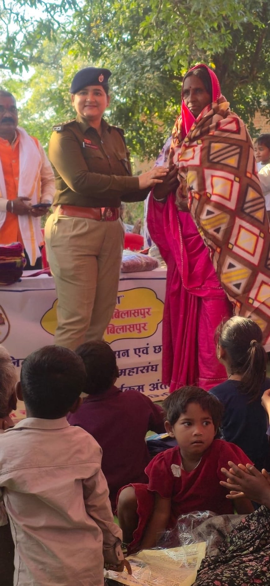 बिलासपुर - पुलिस अधीक्षक रजनेश सिंह (भापुसे)द्वारा चेतना अभियान चलाकर लोगो को जागरूक करने हेतु निर्देशित किया गया था के परिपालन में आज दिनांक 26/12/2025 को चौकी बेलगहना क्षेत्र के अंतर्गत संरक्षित जन जाति बैगा बाहुल्य ग्राम दारसागर–कुपाबांधा झरना में ‘चेतना’ जनजागरूकता अभियान के तहत ‘सियान चेतना सम्मान’ कार्यक्रम आयोजन किया गया। कार्यक्रम का उद्देश्य ग्रामीण क्षेत्रों में वरिष्ठ नागरिकों के सम्मान के साथ-साथ सामाजिक जागरूकता को बढ़ावा दिया गया,उक्त कार्यक्रम में अनुविभागीय पुलिस अधिकारी महोदय कोटा श्रीमती नूपुर उपाध्याय, चौकी प्रभारी उप निरीक्षक हेमंत सिंह, छत्तीसगढ़ वरिष्ठ नागरिक संघ एवं समाजसेवी संस्था के पदाधिकारी डॉ. देवरस जी एवम अन्य पदाधिकारी गण तथा बड़ी संख्या में ग्रामीणजन उपस्थित रहे। उपस्थित वरिष्ठ नागरिकों को ‘सियान चेतना सम्मान में कम्बल शाल तथा उपस्थित बच्चों को गर्म कपड़े स्वेटर, बैग, कॉपी वितरण कर सम्मानित करने से वरिष्ठ नागरिकों में उत्साह एवं आत्मसम्मान से गौरन्वित हुए, छोटे छोटे बच्चे मे खुशी की लहर दौड़ गई, राष्ट्रपति के दत्तक पुत्र कहे जाने वाले सरक्षित बैगा जन जाति को कानूनी अधिकारों, सामाजिक सुरक्षा, महिला एवं बाल सुरक्षा, साइबर अपराध, नशा मुक्ति तथा यातायात नियमों, अनजान कॉल, लिंक या लालच में आकर किसी को भी व्यक्तिगत जानकारी साझा न करने की सलाह दी गई।कार्यक्रम में महिलाओं एवं वरिष्ठ नागरिकों से किसी भी समस्या की स्थिति में निर्भीक होकर पुलिस से संपर्क करने का आग्रह किया। वरिष्ठ नागरिक समाज की अमूल्य धरोहर हैं, जिनके अनुभव एवं मार्गदर्शन से समाज को सही दिशा मिलता रहता है।