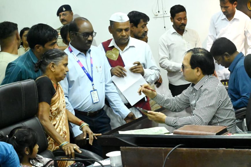 बिलासपुर.......कलेक्टर संजय अग्रवाल ने साप्ताहिक जनदर्शन में दूर-दराज से पहुंचे ग्रामीणों और शहरवासियों की समस्याएं सुनीं। उन्होंने प्रत्येक आवेदक से मुलाकात कर आवेदन प्राप्त किए और संबंधित अधिकारियों को आवश्यक कार्रवाई के निर्देश दिए। जनदर्शन में व्यक्तिगत तथा सामुदायिक हितों से जुड़े अनेक मामलों पर जिला प्रशासन का ध्यान आकर्षित किया गया। इस दौरान नगर निगम आयुक्त प्रकाश कुमार सर्वे और जिला पंचायत सीईओ संदीप अग्रवाल भी उपस्थित रहे। जनदर्शन में राजस्व रिकॉर्ड की त्रुटि सुधार, किसान सम्मान निधि, अवैध कब्जा हटाने, निस्तारी मार्ग खोलने तथा बुनियादी सुविधाओं से जुड़ी शिकायतें प्रमुख रहीं। ग्राम बोडसरा के छात्र ने रिकॉर्ड में नाम त्रुटि के कारण प्रमाण पत्र न बन पाने की समस्या बताई, जबकि तेंदुवा के ग्रामीणों ने तालाब मार्ग पर अवैध निर्माण हटाने की मांग की। शहर के बसंत भाई पटेल नगर वार्डवासियों ने सीसी रोड, नाली, बिजली पोल और पानी पाइपलाइन की मांग रखी। इसके अलावा तालाब निर्माण भूमि पर कब्जा, आर्थिक सहायता, बैंक बकाया, आवास ऋण और जप्त सामान वापसी से संबंधित आवेदन भी प्राप्त हुए। कलेक्टर ने सभी मामलों की जांच कर नियमानुसार शीघ्र निराकरण के निर्देश दिए।