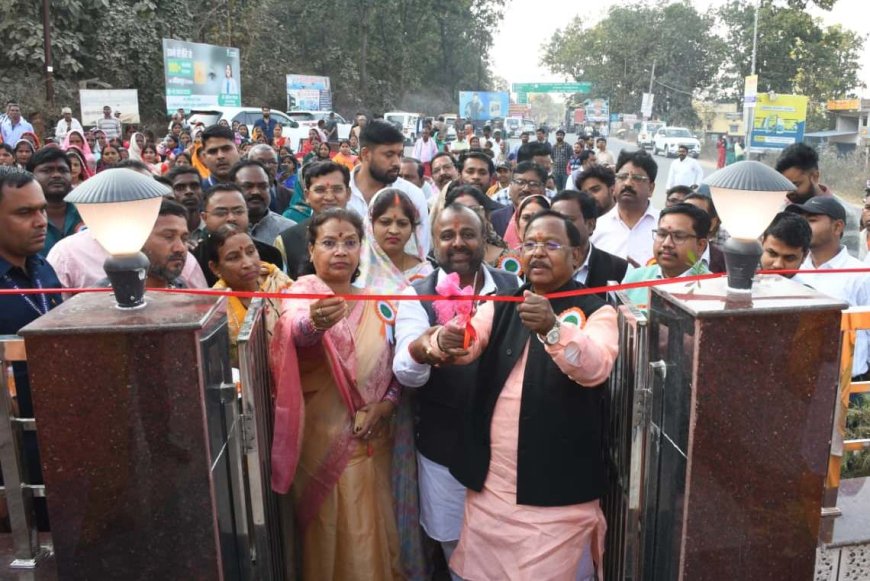 रायपुर - रामानुजगंज में सुशासन के प्रतीक भव्य अटल परिसर का किया लोकार्पण रामानुजगंज के विकास की दिशा में एक ऐतिहासिक अध्याय जोड़ते हुए, कैबिनेट मंत्री रामविचार नेताम ने रामानुजगंज में नवनिर्मित श्अटल परिसरश् का फीता काटकर शुभारंभ किया। इस अवसर पर उन्होंने परिसर में स्थापित भारत रत्न पूर्व प्रधानमंत्री अटल बिहारी वाजपेयी जी की अष्टधातु प्रतिमा का अनावरण भी किया। कार्यक्रम में पूर्व जिला पंचायत अध्यक्ष पुष्पा नेताम विशेष रूप से उपस्थित रहीं। स्कूली बच्चों द्वारा प्रस्तुत सुमधुर स्वागत गीत ‘सांसों की सरगम गाए... सुस्वागतम‘ के साथ कार्यक्रम का आगाज हुआ। समारोह को संबोधित करते हुए मंत्री नेताम ने रामानुजगंज को एक ‘मॉडल नगर‘ के रूप में विकसित करने की बात कही। ’उन्होंने पूर्व में हुए कार्य की सराहना करते हुए कहा कि पूर्वे समय में’ तय किए गए मॉडल के अनुरूप ही आज नगर में सड़कों का जाल बिछा है और बड़े पैमाने पर रिनोवेशन व नाली निर्माण के कार्य हुए हैं। उन्होंने कहा कि वार्डों में पेयजल, बिजली और नाली जैसी मूलभूत सुविधाओं की कमी नहीं होने दी जाएगी और विकास कार्यों में आने वाली किसी भी बाधा का समन्वय कर समाधान निकाला जाएगा। उन्होंने निस्वार्थ भाव से जनसेवा करने और क्षेत्र को स्वच्छ, सुंदर एवं विकसित बनाने का संकल्प लिया। इस अवसर पर बड़ी संख्या में जनप्रतिनिधि, अधिकारी-कर्मचारी एवं नगरवासी उपस्थित थे।