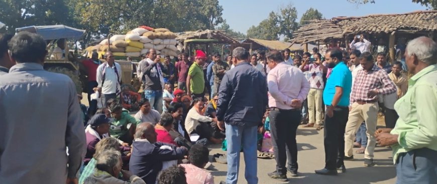 धान खरीदी की मांग पर किसानों का चक्का जाम...तहसीलदार की समझाइश के बाद खुला जाम