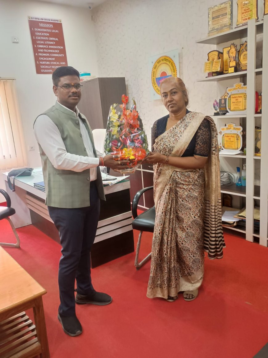 नव नियुक्त प्राचार्य सुषमा तिवारी से अधिवक्ता योगेश मुदलियार की शिष्टाचार भेंट, दी शुभकामनाएं