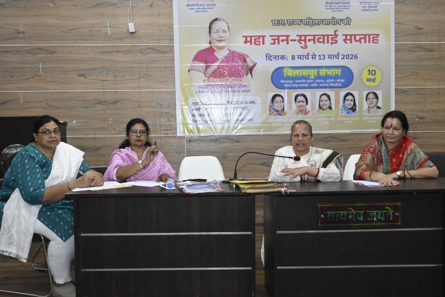 बिलासपुर - छत्तीसगढ़ राज्य महिला आयोग की अध्यक्ष डॉ. किरणमयी नायक द्वारा राज्य की महिलाओं को त्वरित राहत पहुँचाने के उद्देश्य से एक वृहद और संवेदनशील निर्णय लिया गया है। अंतर्राष्ट्रीय महिला दिवस के अवसर पर आयोग द्वारा आगामी 10 मार्च 2026 को बिलासपुर संभाग के लिए महा जन-सुनवाई सप्ताह का आयोजन जिला पंचायत सभाकक्ष, बिलासपुर में किया जा रहा है। आज बिलासपुर संभाग में 02 महा जन-सुनवाई व प्रदेश स्तर पर 377वी एवं जिला स्तर पर 22वी सुनवाई हुई। जिसमें बिलासपुर संभाग के अंतर्गत आने वाले जिले बिलासपुर, रायगढ़, कोरबा, जांजगीर चांपा, सक्ति, गौरेला-पेण्ड्रा-मरवाही, मुंगेली एवं सारंगढ़-बिलाईगढ़ के कुल 159 प्रकरणों की एक साथ सुनवाई की गई। इस महा जन-सुनवाई में बिलासपुर संभाग के जिला कोरबा के 29 में से 06 प्रकरण, जांजगीर.चाम्पा के 22 में से 05 प्रकरण सक्ती के 10 में से 01 प्रकरण रायगढ़ के 46 में से 05 प्रकरण तथा सारंगढ़-बिलाईगढ़, के 13 में से 03, मुंगेली के 07 में से 03, जीपीएम 04, बिलासपुर के 19 में से 04 प्रकरण नस्तीबद्ध किया गया। कुल 159 प्रकरण में से 34 प्रकरण नस्तीबद्ध किया गया। दोनो पक्षो के कुल 170 पक्षकारो ने पंजीयन कराया था बाकी पक्षकार अनुपस्थित है जिसमें आगामी निराकरण हेतु प्रकरण प्रस्तुत किया जायेगा। एक अन्य प्रकरण में आवेदिका और अनावेदक मां बेटा है। आवेदिका अपने मकान बेचना चाहता है जिस पर आवेदक बेचने से रोक रहा है। आयोग के द्वारा समझाये जाने पर अनावेदक का कहना है कि उसकी मां आवेदिका को अपना मकान जिसे चाहे बेंच सकती है उस पर उसे कोई आपत्ति नहीं है। इस स्तर पर बिलासपुर की संरक्षण अधिकारी सीमा गोस्वामी को नियुक्त किया जाता है। आवेदिका संपर्क कर सकती है ताकि अनावेदक किसी भी तरह की रोक या दखल अंदाजी ना कर सके। इसके साथ प्रकरण नस्तीबद्ध किया जाता है। एक अन्य प्रकरण में उभयपक्ष उपस्थित हैं। दोनों आपस में मां-बेटा है। बड़ा पुत्र जो दिल्ली में रहता है उसके कारण आवेदिका अपना मकान बेचना चाहती है। जिसमें अनावेदक रहता है। आवेदिका चाहती है कि उसका पुत्र उसका पूरा ध्यान रखे जिसके लिये वह तैयार है। इस प्रकरण की निगरानी संरक्षण अधिकारी सीमा गोस्वामी करती रहेंगी। आवेदिका को कभी भी परेशानी होने पर निगरानी करती रहेंगी। आवेदक अपनी मां को अपने साथ रखने की जिम्मेदारी लेता है। इसके साथ प्रकरण नस्तीबद्ध किया जाता है। सुनवाई के दौरान एक अन्य प्रकरण में उभयपक्ष उपस्थित हैं। आवेदिका ने बताया कि उसकी आंतरिक शिकायत पर विभाग द्वारा कार्यवाही किया जा रहा है। कोरबा के संरक्षण अधिकारी को यह जिम्मेदारी दिया जाता है कि वह अनावेदक के कार्यालय में पत्र देकर आंतरिक समिति की जांच व कार्यवाही में उपस्थित रहेंगी। जिससे आवेदिका की कार्यवाही निष्प