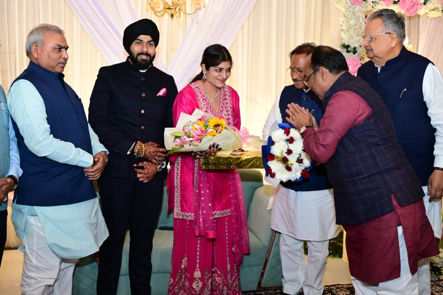मुख्यमंत्री विष्णुदेव साय और विधानसभा अध्यक्ष डॉ.रमन सिंह बिलासपुर पहुंचे...क्रेडा अध्यक्ष भूपेंद्र सवन्नी की पुत्री के विवाह समारोह में शामिल हुए