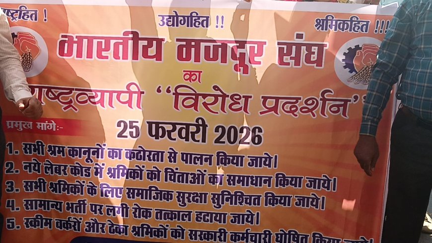 श्रम कानून संहिता के विरोध में भारतीय मजदूर संघ का राष्ट्रव्यापी प्रदर्शन