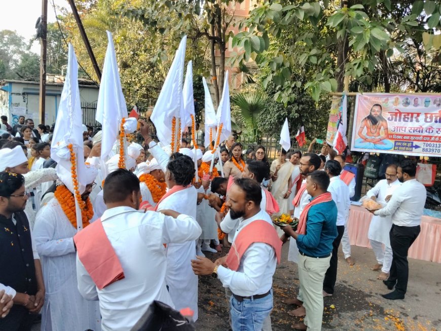 बिलासपुर - सतनाम पंथ के सामाजिक, सांस्कृतिक एवं संवैधानिक अधिकारों को लेकर निकाली जा रही सतनाम स्वाभिमान यात्रा का बिलासपुर जिला मुख्यालय के नेहरू चौक में जोहार छत्तीसगढ़ पार्टी और छत्तीसगढ़िया क्रान्ति सेना द्वारा परंपरागत तरीके से भव्य स्वागत किया गया। इस अवसर पर जोहार छत्तीसगढ़ पार्टी एवं छत्तीसगढ़िया क्रान्ति सेना के सेनानियों ने यात्रा में शामिल गुरुओं, कार्यकर्ताओं और अनुयायियों का फूल-मालाओं, नारियल के संग लाल गमछा भेंट कर गुरुघासी बाबा के जयघोष और सतनाम पंथ के प्रतीकों के साथ आत्मीय अभिनंदन किया। संगठन के पदाधिकारियों ने कहा कि सतनाम स्वाभिमान यात्रा छत्तीसगढ़ के मूल निवासियों, सतनाम समाज के आत्मसम्मान, समानता और अधिकारों की सशक्त आवाज है। बाबा गुरु घासीदास जी के “मनखे-मनखे एक समान” के विचार को जन-जन तक पहुँचाने का यह प्रयास समाज को नई दिशा देगा। जोहार छत्तीसगढ़ पार्टी एवं छत्तीसगढ़िया क्रान्ति सेना के पदाधिकारियों ने स्पष्ट किया कि सतनाम समाज के सम्मान, अधिकार और छत्तीसगढ़िया अस्मिता की रक्षा के लिए उनका संघर्ष निरंतर जारी रहेगा। कार्यक्रम के दौरान बड़ी संख्या में जोहार छत्तीसगढ़ पार्टी और छत्तीसगढ़िया क्रान्ति सेना के सेनानियों पदाधिकारियों के साथ ही सामाजिक कार्यकर्ता, युवा एवं आम नागरिक उपस्थित रहे।