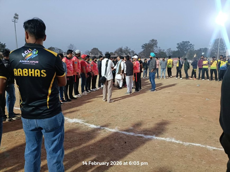 आज दिनांक 14 फरवरी को रात्रिकालीन क्रिकेट टूर्नामेंट “अंबिकापुर चैंपियन लीग (APL)” का भव्य शुभारंभ अंबिकापुर स्थित गांधी स्टेडियम ग्राउंड में पूरे श्रद्धा-भाव और उत्साह के साथ हुआ। टूर्नामेंट का आगाज़ सनातन परंपराओं, वैदिक मंत्रोच्चार एवं शंखनाद के साथ किया गया, जिससे आयोजन स्थल आध्यात्मिक ऊर्जा और खेल भावना से सराबोर नजर आया। रात्रिकालीन रोशनी में सजा मैदान, खिलाड़ियों और दर्शकों की भारी उपस्थिति ने उद्घाटन समारोह को यादगार बना दिया। APL न केवल क्रिकेट प्रतियोगिता है, बल्कि खेल के माध्यम से सामाजिक समरसता और युवाओं को सकारात्मक दिशा देने का एक सशक्त मंच भी साबित हो रहा है।