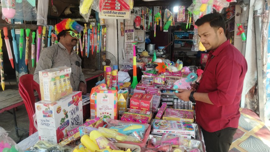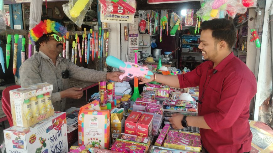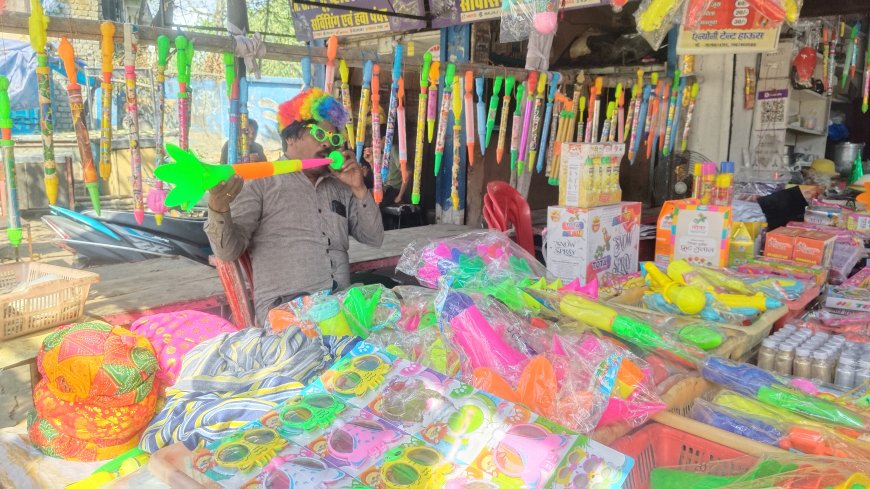 होली से पहले बाजारों में रंगों की बहार, गुलाल-पिचकारी से सजी दुकानें