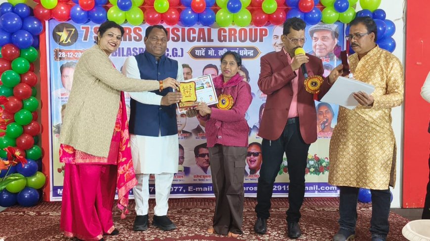 बिलासपुर– सुरों के सरताज, महान गायक मोहम्मद रफी की याद में बिलासपुर में एक भव्य संगीतमय कार्यक्रम का आयोजन किया गया। 7 स्टार म्यूजिकल ग्रुप के डायरेक्टर राकेश रोशन साह एवं उनकी पूरी टीम द्वारा आयोजित “मोहम्मद रफी की यादें” कार्यक्रम पुराने बस स्टैंड स्थित होटल एमराल्ड में संपन्न हुआ।कार्यक्रम में छत्तीसगढ़ के विभिन्न जिलों से पहुंचे गायक कलाकारों ने रफी साहब के अमर गीतों एवं दिवंगत भारत के मशहूर हीरो धर्मेंद्र पर फिल्माया गया मनमोहक गीतों की प्रस्तुति दी। भजन, रोमांटिक, देशभक्ति और ग़ज़ल गीतों की मधुर धुनों पर श्रोता भाव-विभोर हो उठे और तालियों की गूंज से कलाकारों का उत्साह बढ़ाते रहे। रफी साहब के गीतों की प्रस्तुति ने यह साबित कर दिया कि उनकी आवाज़ और सुरों का जादू आज भी उतना ही जीवंत है, जितना पहले था। कार्यक्रम में अतिथि के रूप में शामिल हुए संगीत प्रेमी पार्षद इब्राहिम खान अब्दुल भाई, साथ में पूर्व महापौर रामशरण यादव की धर्मपत्नी श्रीमती विनिता यादव, दैनिक छत्तीसगढ़ वॉच अखबार के बिलासपुर ब्यूरो चीफ कमलेश लवहातरे, संवादाता यु मुरली राव, पार्षद प्रतिनिधि राज बंजारे, राघवेंद्र शर्मा बी सतीश प्रसाद नरसिंह मूर्ति, भाजपा प्रदेश अल्पसंख्यक मोर्चा के मीडिया प्रभारी शाहीद रजा के स्थान पर उनके प्रतिनिधि उपस्थित हुए। कार्यक्रम की खूब तारीफ की है। निम्न गायक कलाकारों ने अपनी प्रस्तुति दी शिल्पा निषाद लक्ष्मी वर्मा बी एच श्रीनिवास अरविंद कोनहेर आनंद गुप्ता पी एस श्रीनिवास कांति जटवार मुकेश साहु माया बनवारे अंजली कुमारी रानू पसेरीया विमल सुमेर शकील खान राजेंद्र शुक्ला रवि पाल जय सिंह एवं वीडियोग्राफर मनहरण सिंह आदि कार्यक्रम की शोभा बढ़ाएं। कार्यक्रम के समापन पर सभी कलाकारों को अतिथियों के द्वारा प्रशस्ति पत्र एवं मोमेंटो भेंट कर सम्मानित किया गया, जिससे कलाकारों का मनोबल और बढ़ा।