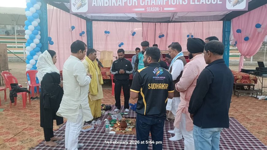 आज दिनांक 14 फरवरी को रात्रिकालीन क्रिकेट टूर्नामेंट “अंबिकापुर चैंपियन लीग (APL)” का भव्य शुभारंभ अंबिकापुर स्थित गांधी स्टेडियम ग्राउंड में पूरे श्रद्धा-भाव और उत्साह के साथ हुआ। टूर्नामेंट का आगाज़ सनातन परंपराओं, वैदिक मंत्रोच्चार एवं शंखनाद के साथ किया गया, जिससे आयोजन स्थल आध्यात्मिक ऊर्जा और खेल भावना से सराबोर नजर आया। रात्रिकालीन रोशनी में सजा मैदान, खिलाड़ियों और दर्शकों की भारी उपस्थिति ने उद्घाटन समारोह को यादगार बना दिया। APL न केवल क्रिकेट प्रतियोगिता है, बल्कि खेल के माध्यम से सामाजिक समरसता और युवाओं को सकारात्मक दिशा देने का एक सशक्त मंच भी साबित हो रहा है।